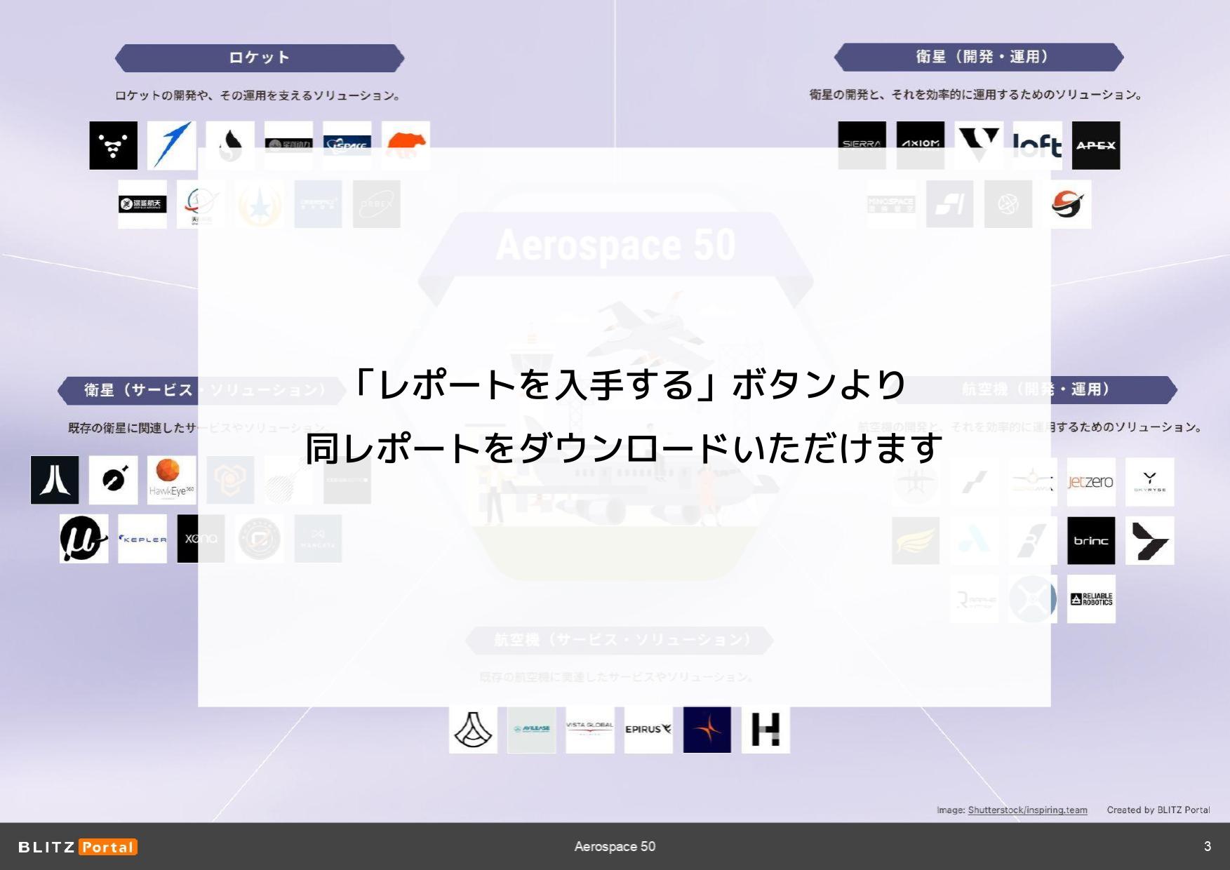 「ロケット」、「衛星(開発・運用)」、「航空機(開発・運用)」の注目スタートアップを紹介