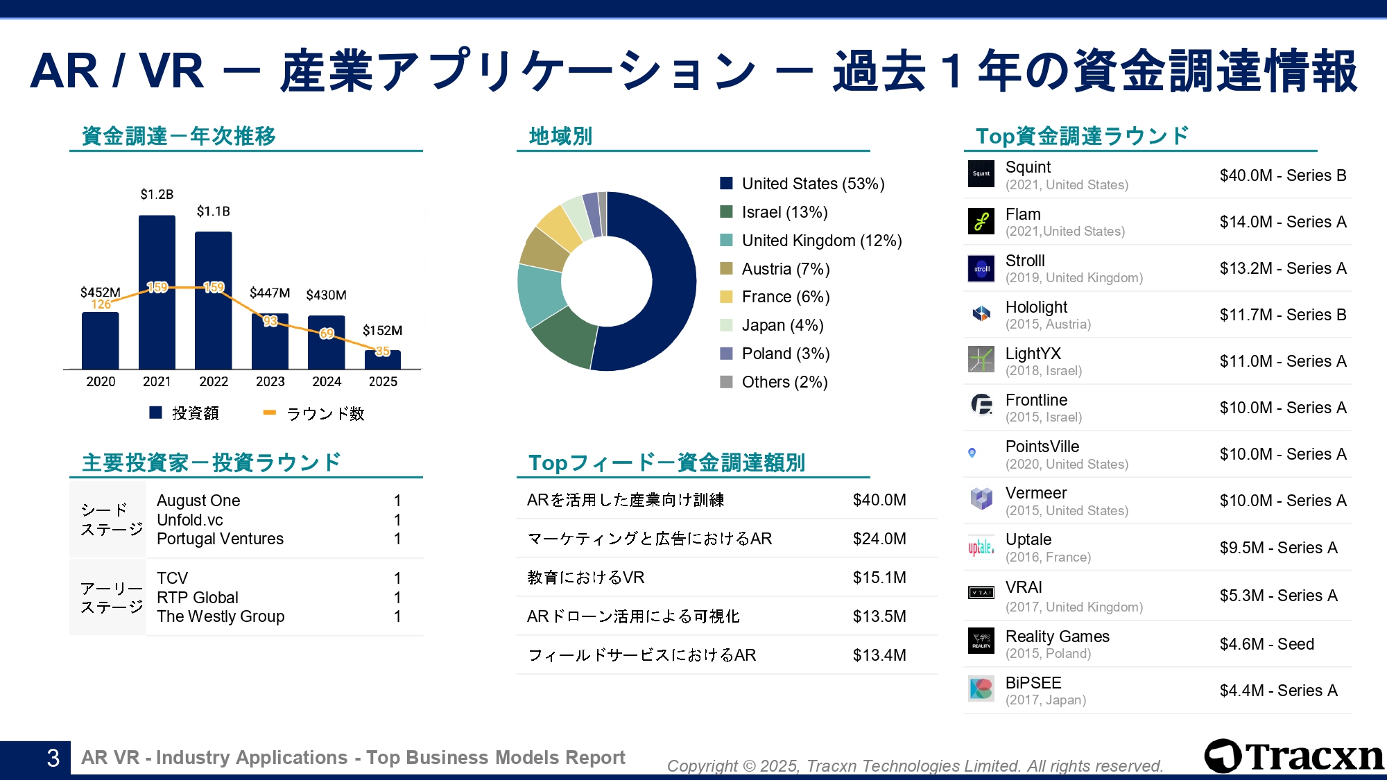 AR / VR関連のスタートアップによる資金調達動向を一括把握