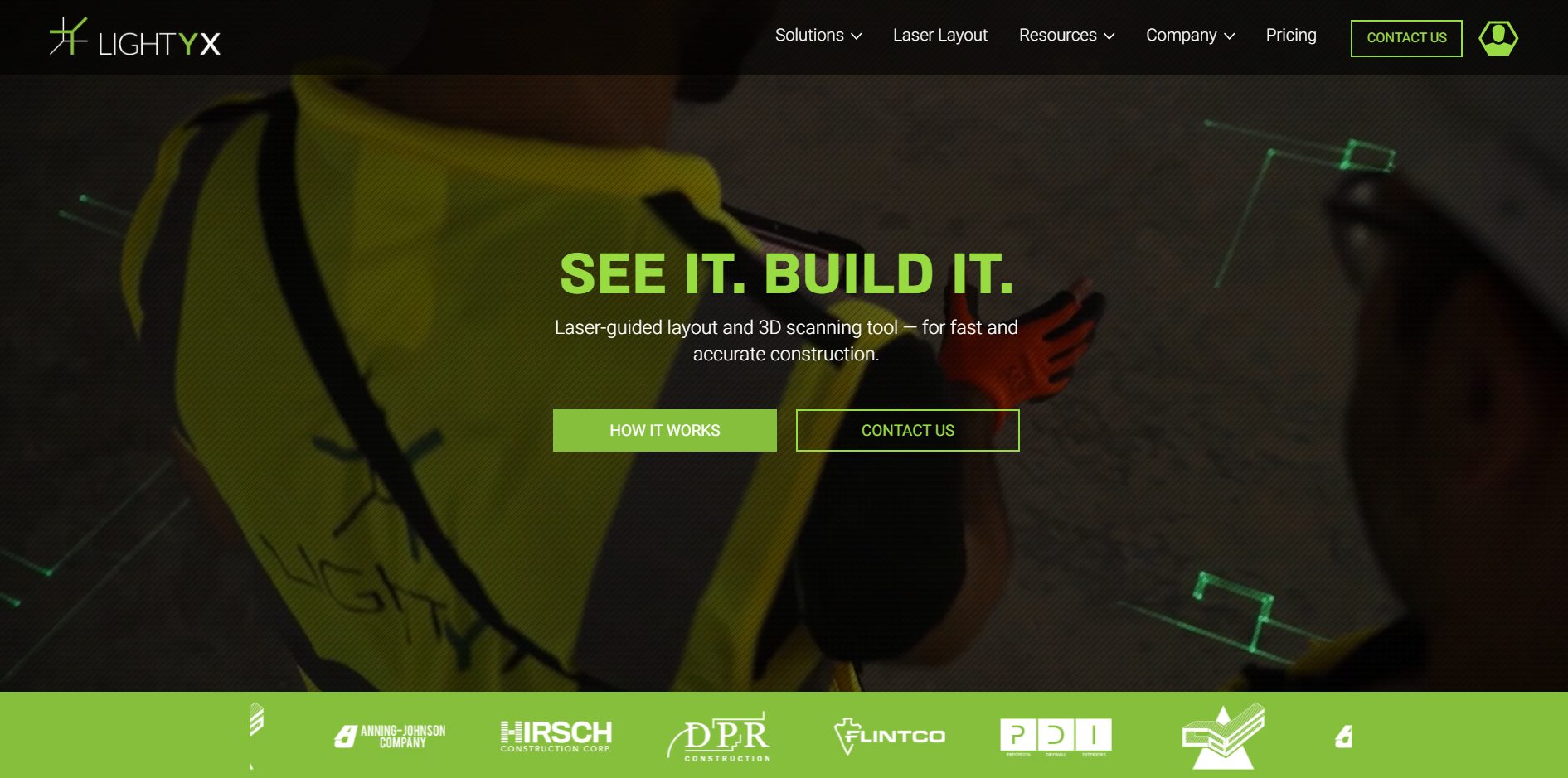 デジタル図面を建設現場の床 / 天井 / 壁にレーザー投影する、高精度かつ高速な建設レイアウトソリューション。2D / 3Dのデジタル設計図を現場に実寸大でレーザー投影し、正確なレイアウトを可視化することで、ミスを最小化しながら建設プロセスを効率化する。