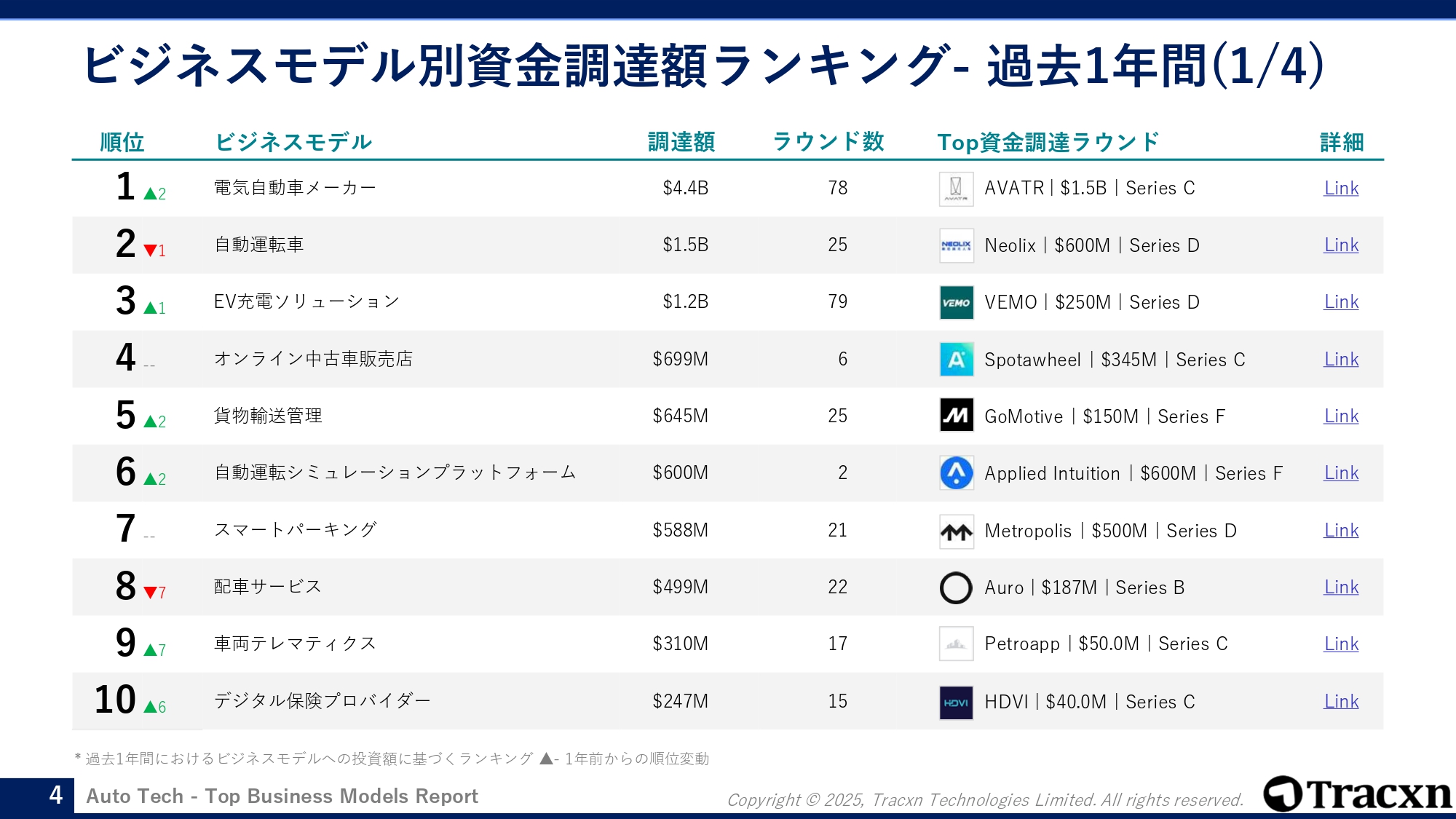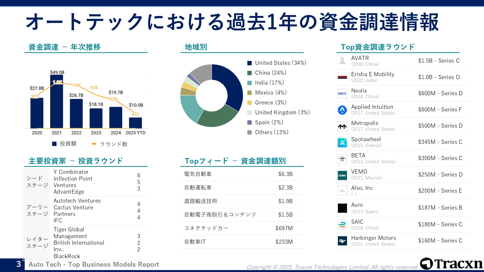 オートテック関連のスタートアップによる資金調達動向を一括把握