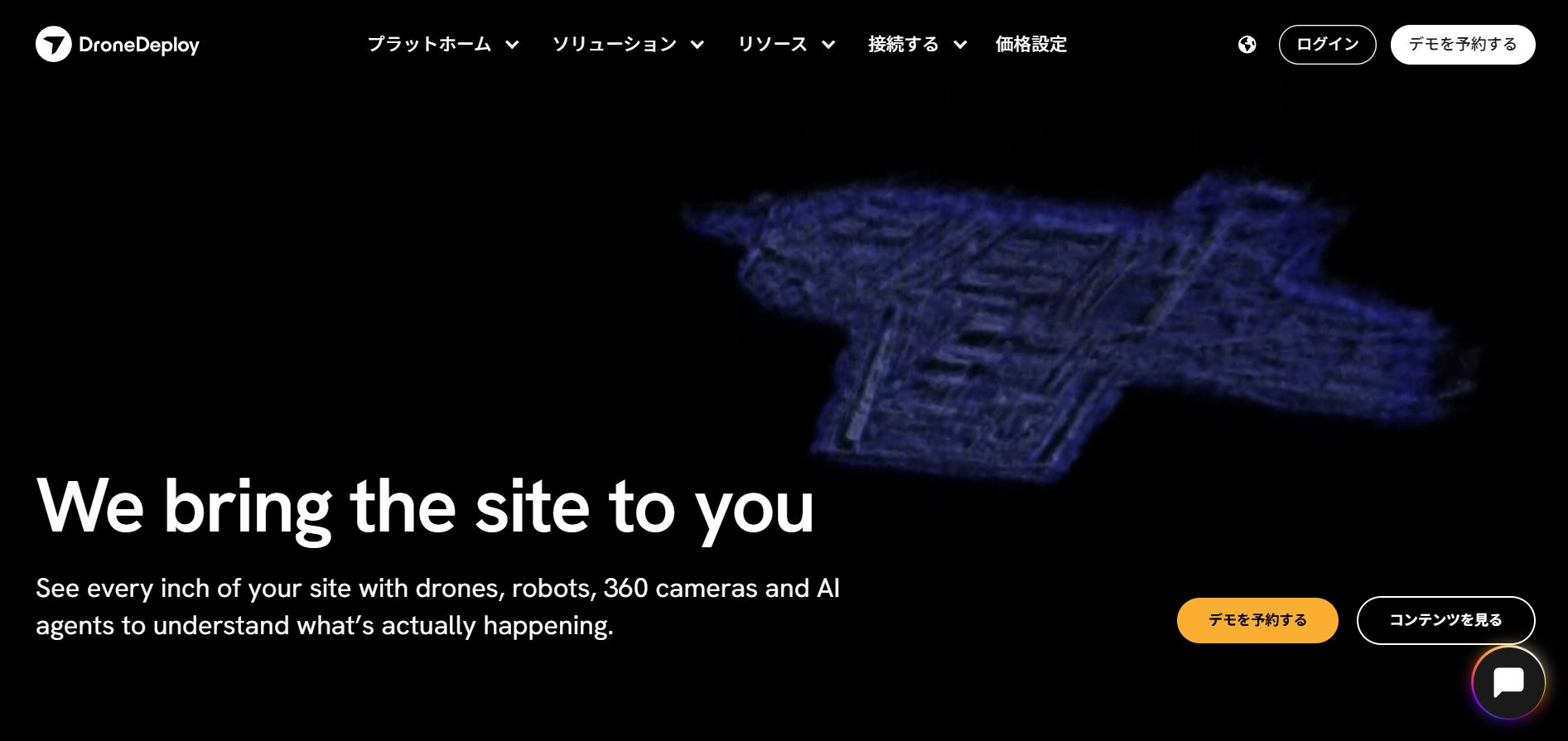 ドローンや360度カメラによる画像データを統合して作業現場を可視化する、AI搭載のリアリティキャプチャプラットフォーム。ドローン⾶⾏と地上ロボットの活⽤により、作成された現場のデジタル記録を、設計図データとオーバーレイし、問題箇所のタグ付けや、注釈の追加が可能。レポートをチームと共有できる。