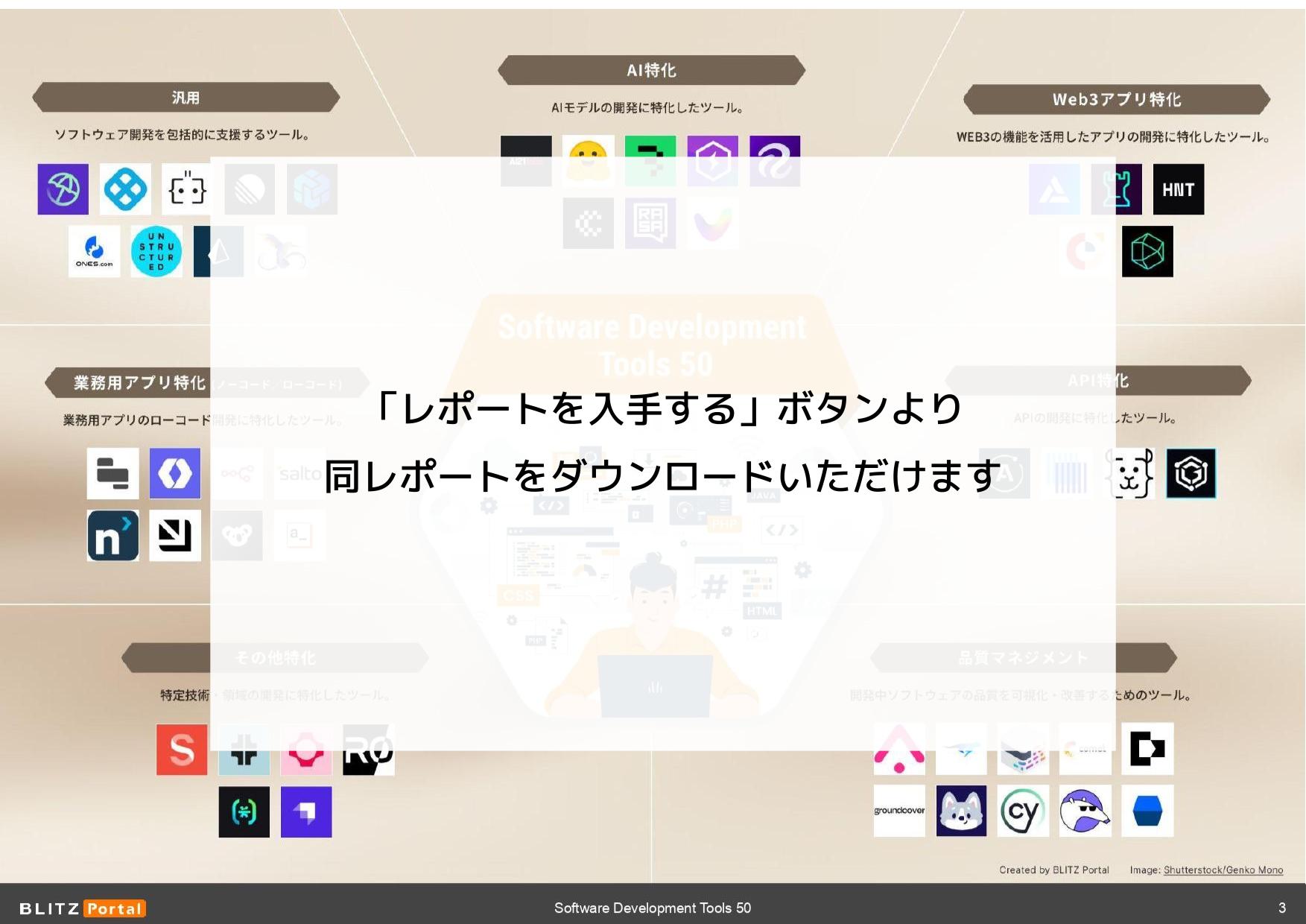 多くの企業にとって、ソフトウェア開発はビジネスの競争力を左右する重要な要素となっています。テクノロジーの進化とビジネス環境の急速な変化の中で、いかに効率的かつ高品質なソフトウェアを開発もしくは導入していくかが、企業の持続的な成長の鍵を握っているといっても過言ではありません。 ある調査*によると、ソフトウェア開発ツールの市場規模は2024年の$6.6Bから、2033年には$22.6Bへと拡大し、年平均成長率(CAGR)は14.5%に達すると見込まれています。こうした成長の背景には、DXの加速やクラウドベースソリューション、モバイル / Webアプリケーションの普及があります。さらにその基盤としてAI、Web3、APIといった技術の活用拡大があります。 また、同市場ではこれまで、アジャイル開発やDevOps、クラウドを活用したアプローチを通じて、開発プロセスの合理化が進められてきました。現在ではさらに、ローコード / ノーコードやAIの活用により、一層の効率向上が期待されています。 本レポートでは、世界のソフトウェア開発ツール関連スタートアップの中から累計資金調達額トップ50社(2025年6月時点)をピックアップし、カテゴリー別にご紹介します。皆様の情報探索の一助になりますと幸いです。