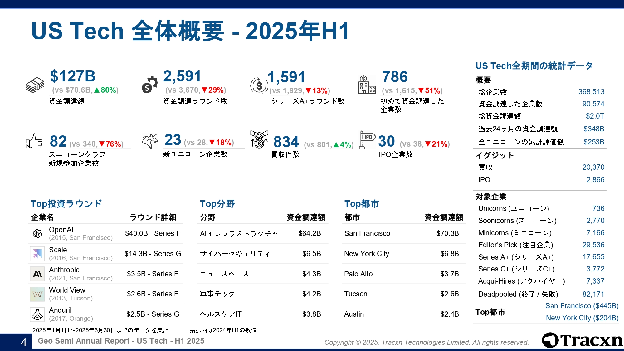「米国最新テック企業 2025年 (2025年1月〜6月)」レポートでは、以下の内容をレポートとしてまとめています。
