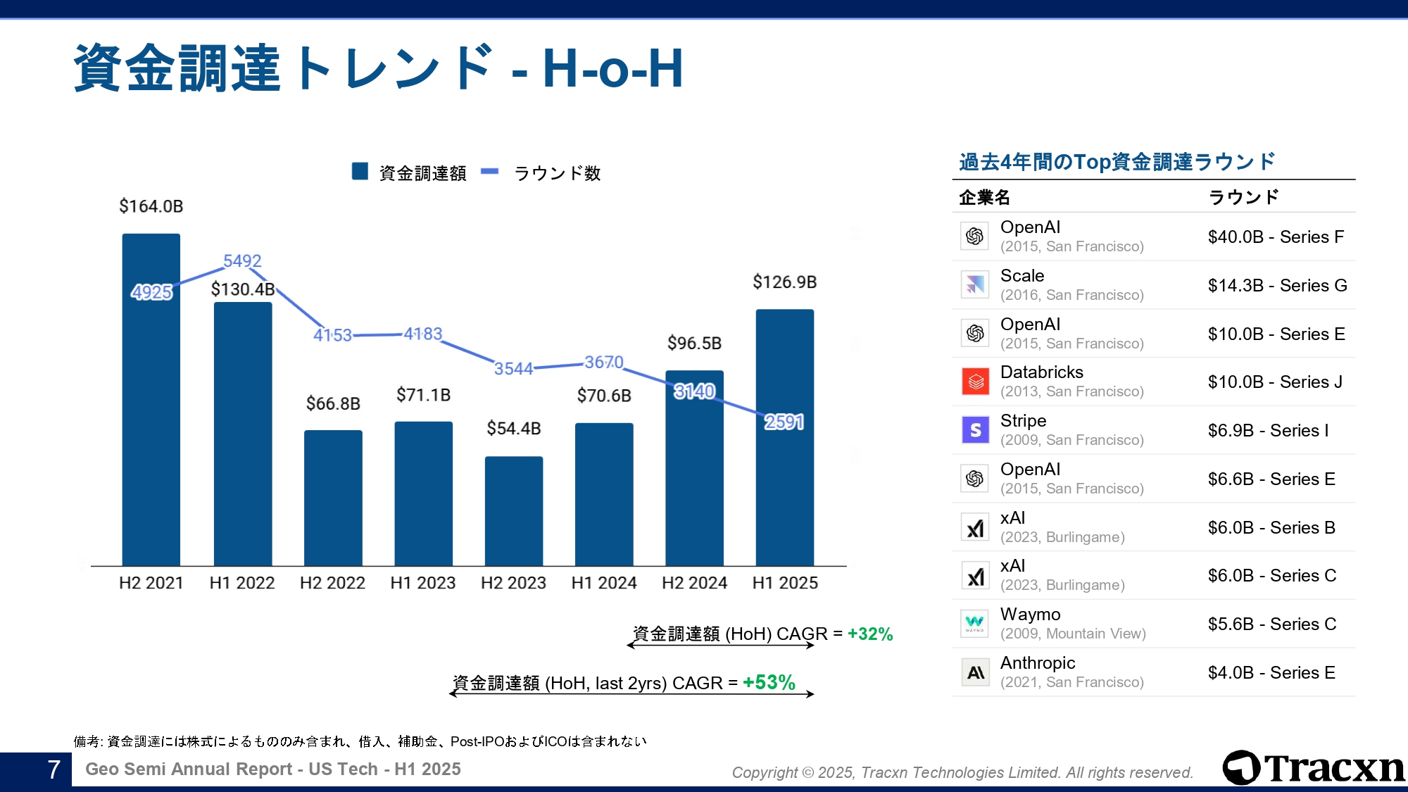 - 2025年1月〜6月の全体概要(資金調達額・資金調達ラウンド数など)