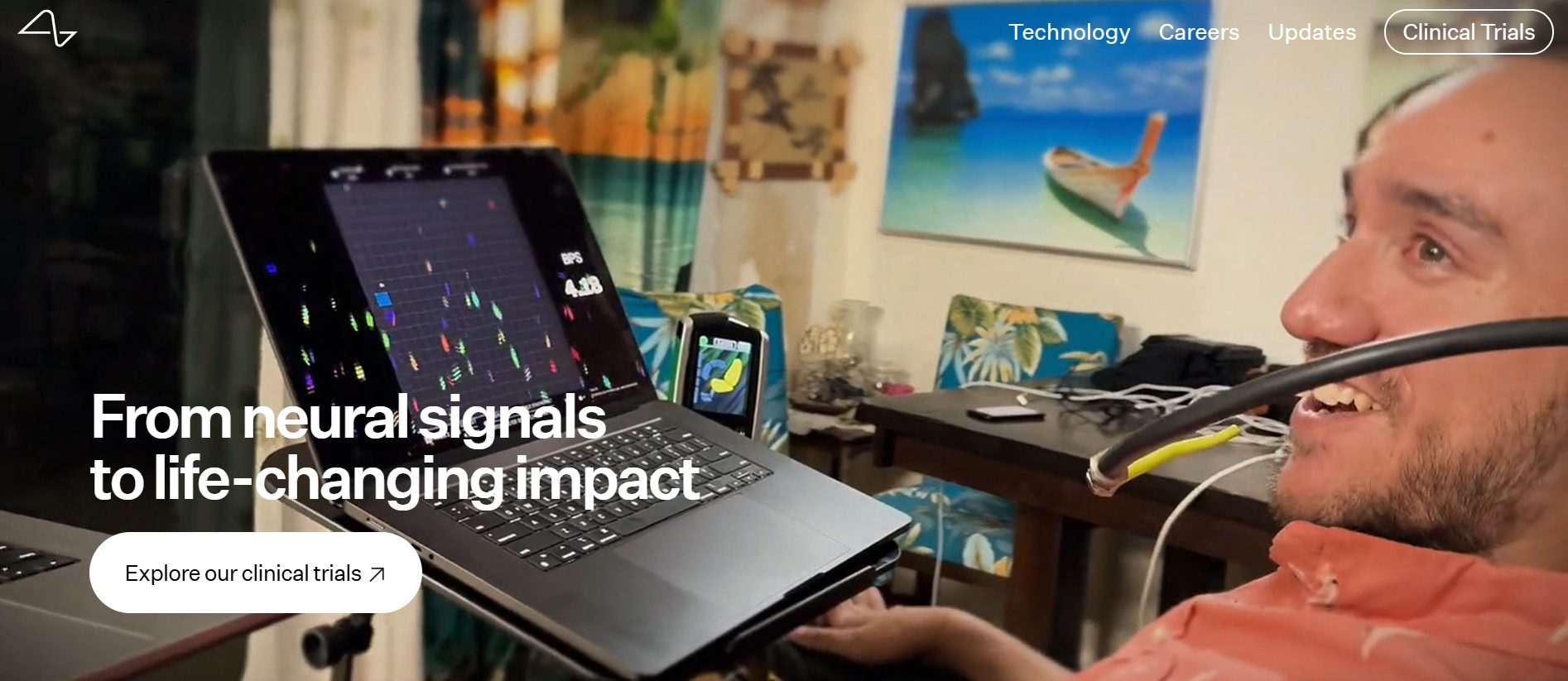 脳の信号で外部デバイスを制御できるワイヤレスブレインマシンインターフェイス。脳に埋め込むコインサイズのデバイスが神経信号を処理し、専用アプリケーションにワイヤレスでデータを送信。アプリケーションにてデータを分析し、具体的な動作(アクション)に変換する。